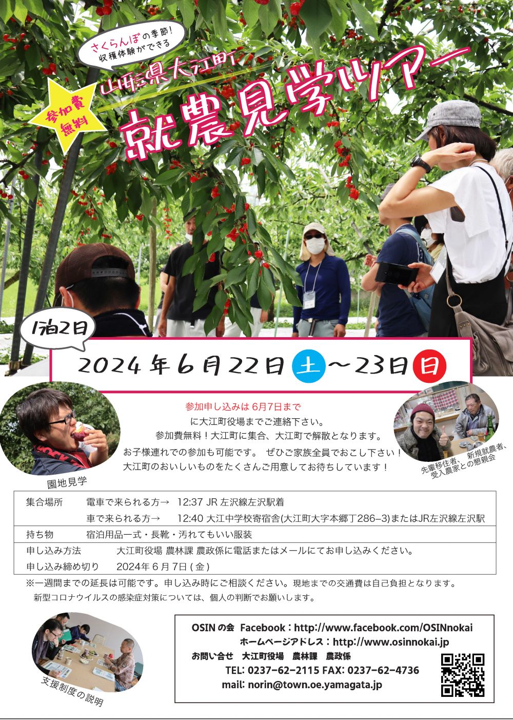 参加無料 さくらんぼの季節 就農見学ツアー開催(大江町)
